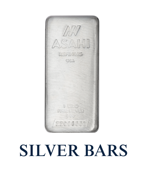 Fine silver bullion bars cast or pressed to .999 purity by LBMA-approved refiners. Offered in popular weights from 1 oz to 100 oz, each bar carries a unique serial number and is backed by our full insurance.
